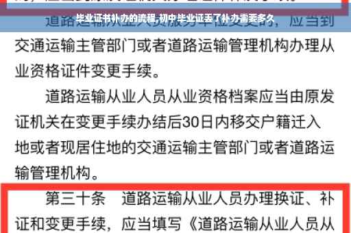 初中毕业证遗失后,学生应向学校提出申请,学校核审后进行补办,最后交区教育局验印方为有效,补办时间大概需要30-45天。