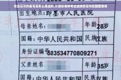 毕业证编号是学校按照教育部制定的编码规则编制的,共有18位,排列有一定规律:前5位是学校的编号,第6位是教育类型,第7到第10位是毕业年份,第11、12位是教育层次,最后6位是流水号。每年在学生毕业前2到3个月,学校会把毕业学生的名单送交相关部门,每个毕业生会得到毕业证书和相应的证书编号。