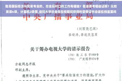 六是从事教学研究。 考证,英语六级、计算机二级是必要的,尤其外语等级分数越高越好。其它专业证书,并不太重要,近年国贸岗位对证书并没有要求,做外贸外销员、跟单员、报关员、外贸会计等证书也可考虑考一下。如果将来打算进入金融机构就业,可考银行从业资格、证券从业资格、基金从业资格。