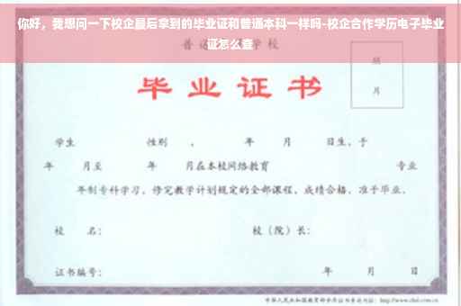 对于校企合作的本科生,与同一院校的同一专业的普通本科生同学的毕业证书是一样的。