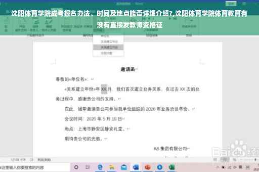 3.沈阳体育学院报名地点:考生到所在地的市(区)招生办公室指定的报名点就近报考。一般在8月中下旬可在各省级招生考试机构公布的报名网址进行报名,9月初到指定地点进行现场确认。