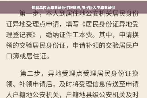 当招聘单位要求毕业证原件时,意思是他们需要你提供你的毕业证书的实物原本,而不是复印件或电子版。这是为了确认你的学历和毕业情况的真实性。毕业证原件通常由学校颁发,上面有你的个人信息、学校名称、专业、学位等内容。
