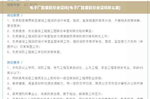 到此,以上就是小编对于电子厂能查到毕业证吗的问题就介绍到这了,希望介绍关于电子厂能查到毕业证吗的4点解答对大家有用。