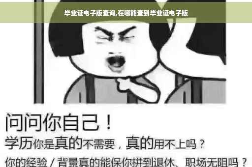 这个问题需要你提供更多的具体信息。如果你是在中国大陆的一个学校毕业,你可以联系学校的教务处或者学校的学位办公室咨询有关毕业证的电子版查询。如果你是在其他国家或地区毕业,你可以联系学校的教务处或者学生服务中心来获取相关信息。一般来说,学校会为毕业生提供可以验证毕业证真伪的途径和方式。