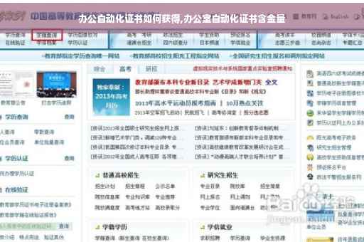 办公自动化证书分许多部分的,比如教育部的,信息产业部的,劳动部的等等,电脑学校考试只是个代考点,证书不是他们发的。它的基本任务是利用先进的科学技术,使人们借助各种设备解决对一部分办公业务的处理,达到提高生产率、工作效率和质量,方便管理和决策的目的。OA的知识领域覆盖了行为科学、管理科学、社会学、系统工程学等学科,并且OA体现了多学科的相互交叉、相互渗透性,所以OA的应用是企业管理现代化的标志之一。