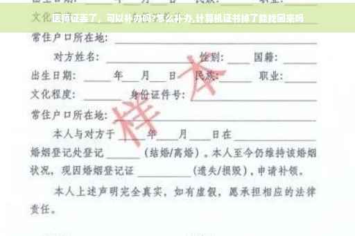 执业医师资格证是可以补办的,需要以下手续。申报材料:(一)补办《医师资格证书》须提交以下材料:1、原持证人在报刊上刊登遗失公告的原件及复印件;2、《医师资格证书遗失补办申请表》(需加盖、出具单位及各级卫生行政部门的公章、意见);3、本人身份证原件及复印件(验证后退回原件);4、毕业证书原件及复印件(验证后退回原件);5、专业技术资格证书原件及复印件(验证后退回原件);6、近期二寸免冠正面半身黑白照片二张;附注:原证损坏申请换领的,需提交已损坏的原证。(二)补办《医师执业证书》须提交以下材料:1、原持证人遗失补领证书的申请书;2、《医师执业证书遗失补办申请表》(需加盖单位及卫生行政部门意见);3、原持证人在报刊上刊登遗失公告的原件及复印件4、资格证书原件及复印件(验证后退回原件);5、本人身份证原件及复印件(验证后退回原件);6、近期二寸免冠正面半身黑白照片二张;7、原证损坏申请换领的,需提交已损坏的原证;8、提供材料真实性的。如果是执业医师证丢失的,挂失三个月后,持报纸到县卫生局医政股补办如果是医师资格证丢失的,需拿医师资格认定审核表到省卫生厅办理。如果是最早的,原始证件上不是电脑打印的鉴定书,还需提供专业技术资格评定表到省卫生厅办理。
