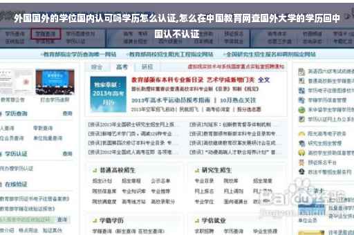 查询国外大学学位是否被中国教育部认可:登录中华人民共和国教育部涉外监管信息网 查询,进入首页后点“国外院校”进行查询。 国外学历学位认证为贯彻国家"支持留学、鼓励回国、来去自由"的政策,满足广大留学生回国人员及其他海外、外国学位获得者在中国升学、就业、申请科研基金等依据而针对留学回国人员开展的一项国外学历学位鉴定工作。通过出具认证书的模式,来表示该学生的海外学历以及就读方式都是教育部认可的。其中包含了对就读方式,就读学校,学习时间等各个方面的考察,取得学历学位认证书,就是对以上考察项均认可的表示。 认证评估标准: 国外学历学位认证为贯彻国家"支持留学、鼓励回国、来去自由"的政策,满足广大留学生回国人员及其他海外、外国学位获得者在中国升学、就业、申请科研基金等依据而针对留学回国人员开展的一项国外学历学位鉴定工作。通过出具认证书的模式,来表示该学生的海外学历以及就读方式都是教育部认可的。其中包含了对就读方式,就读学校,学习时间等各个方面的考察,取得学历学位认证书,就是对以上考察项均认可的表示。