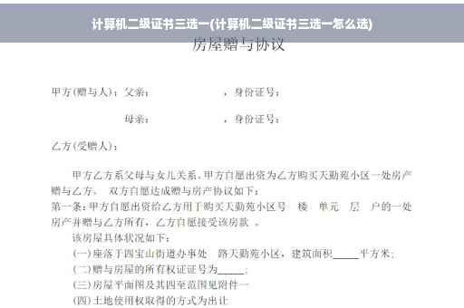 大家好,关于计算机二级证书三选一的问题,于是小编就整理了2个相关介绍计算机二级证书三选一的解答,让我们一起看看吧。