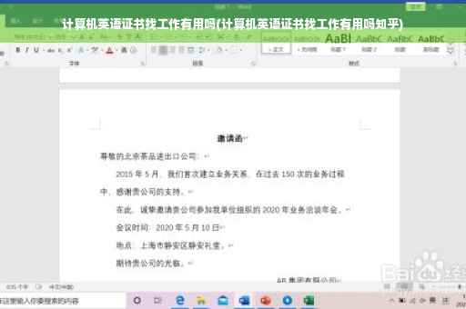 大家好,关于计算机英语证书找工作有用吗的问题,于是小编就整理了1个相关介绍计算机英语证书找工作有用吗的解答,让我们一起看看吧。