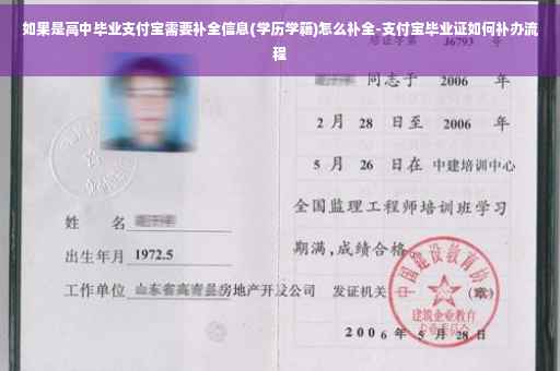 如果是高中毕业支付宝需要补全信息(学历学籍)直接填写高中毕业即可。学历,指曾在哪些学校肄业或毕业之后得到的一纸文凭,在实际生活和工作中,是指最后也是最高层次的一个学历证书,以经教育行政部门批准,实施学历教育、由国家认可的文凭颁发权力的学校及其它教育机构所颁发的学历证书为凭证。学历分为:小学、初中、中专/高中、专科/本科、硕士研究生、博士研究生。学历分为全日制和非全日制。