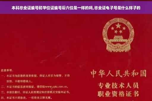 毕业证编号也叫电子注册号,一般来说,只要在网上能通过姓名、毕业证编号查到毕业证信息,就能证明存在其学历。不同的高校对于该毕业证书编号的称谓不同,有的叫做学校编号、学历证书编号、学历证编号、毕业证书号码、毕业证号码等等,只要是2001年以后毕业的,都可以在毕业证书上找到一个17位或者18位的数字,这个数字就是证书编号。 电子注册以后 可以通过 国家教育局的 高等教育学生信息网进行查询,如果你是当年毕业生的话,那么在当年查询是不收取费用的,另外时间或是另外的人查询需要收取一定费用,这点也可以在上有所了解, 学位证书编号是标志被授予者的受教育程度和学术水平达到规定标准的学术称号。我国学位分学士、硕士、博士三级,学位证书编号是由于现代信息技术发展,对所颁发的学位证书予以编号便于管理。普通博士、硕士、学士学位证书(以下简称三级学位证书)编号调整为16位数:前五位为学位授予单位代码;第六位为授予学位的级别,博士为2,硕士为3,学士为4;第七至第十位为授予学位的年份,如:2006年为2006;后六位为学位授予单位授予学位人员的顺序号码。不一样的。 1)毕(结)业证书编号即为注册号,使用阿拉伯数字,统一规范为18位。 毕业证的顺序编排:前5位为学校或其他教育机构的国标代码;第6位为办学类型代码;第7至10位为年份;第11至12位为培养层次代码;第13位至17位为学校对毕(结)业证书编排的序号。2002年学历证书编号扩充至18位(但当年有部分高校仍使用17位)。