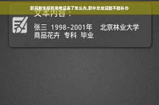 如果职业高中新生的准考证丢失了,建议按照以下步骤进行处理: