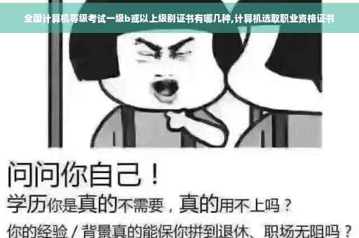 全国计算机等级考试一级b或以上级别证书有二级vb、二级c语言、二级C++、二级Java、二级WEB程序设计、二级VFP、三级PC技术、三级信息管理技术、三级数据库技术、三级网络技术等。 全国计算机等级考试(NationalComputerRankExamination,以下简称NCRE),是经原国家教育委员会(现教育部)批准,由教育部考试中心主办,面向社会,用于考查非计算机专业应试人员计算机应用知识与技能的全国性计算机水平考试体系。