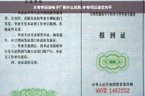 大专学历进电子厂没有什么优势,因为这样的学历并不算高,很多知名的电子厂招聘员工的最低学历要求就是大专,虽然部分电子厂也招生,高中毕业生,但是大专学历在电子厂里面并没有特别的优势,大部分电子厂都是按照产量来计算工资,跟你的学历关系不大