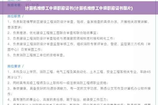 到此,以上就是小编对于计算机维修工中级职称证书的问题就介绍到这了,希望介绍关于计算机维修工中级职称证书的5点解答对大家有用。