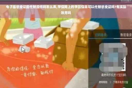学信网当中的电子学历证明,是不能代替毕业证使用的。电子学历证明是不可以代替毕业证使用的,以考研为例,现场确认的时候不仅要审核毕业证的原件和复印件,还需要学信网电子学历证明。也就是说学信网上的信息只是种辅助证明材料。
