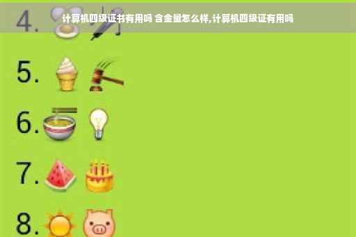 过了四级,但如果单靠那个四级证,你也找不到好工作,老实说,四级的地位很尴尬——食之无味弃之可惜,对于非计算机专业的人员来说,计算机等级考试的证书可以增加他们的就业竞争力,但是4级对于他们来说用不上——过于专业化了,2、3级足够满足他们的要求;而对于计算机专业的人员来说,四级不够用——四级的内容仅相当于计算机自考本科关于计算机方面的内容,当今社会还没听说过仅凭着自考本科毕业证就能找到很好的工作的,在校的全日制本科生学的东西要比四级多不少。 四级的主要作用不在于给别人看,而是在于给你自己一个学习的指路牌,积累知识用的。要记住NCRE当初设立的目的就是全民普及电脑知识用的。对于喜欢计算机但是未能考取计算机专业的同学,对于没能考上大学但是希望学习计算机的同学,对于学习计算机专业想检验一下自己的知识是否够基本标准线的同学,四级都是一个很好的选择。四级的内容涉及了计算机专业本科的经典主干核心课程,学了它以后,再学习一点实用的技术如单片机编程、asp、jsp、j2ee等,再自己开发出一个中小型的软件或者网站。并向用人单位展示你的作品,你会得到一个惊喜。 记住,四级只是阶梯,只是过程,而不是终点和最终目标