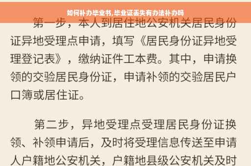 第一。比较麻烦的办法是。带上你的身份证。去毕业的学校。找到教务处。让教务处出示一份证明。然后去教育局。申请补办。这个程序下来大概需要两个月左右。