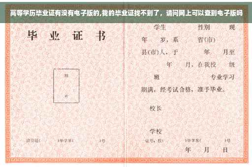 大家好,关于高等学历毕业证有没有电子版的问题,于是小编就整理了5个相关介绍高等学历毕业证有没有电子版的解答,让我们一起看看吧。