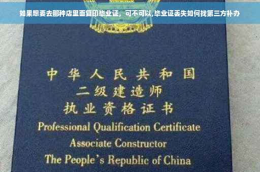 可以去复印店复印毕业证。原因是复印店通常提供文档复印服务,包括复印证件、文件等。复印毕业证并没有违法或不合规的因素,因为它只是对原始文件的复制,并没有进行任何篡改或伪造。当然,在进行复印时需要确保自己是合法的毕业证持有者,以避免侵权或欺诈行为。