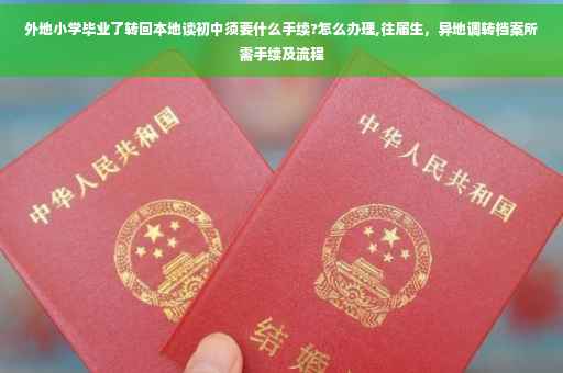 外地小学毕了转回本地读初中,首先要在本地房产,户口管辖的片区里学校及教委申请登记,取得本地教育管理部门同意及备案,再去外地就读小学的教育管理部门申请转学,就读小学校长及班主任老师签字,还要带上毕业小学的档案材料等才能转回本地初中报名就读。
