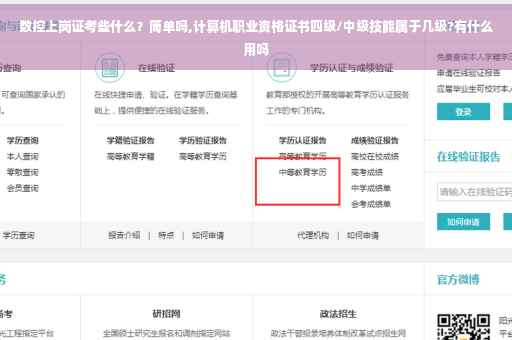 你也可以在劳动保障部门组织的社会考点来考去相关的职业资格证书 数控证书 一般有 中华人民共和国 劳动和社会保障部 -就业技术知道中心 举办的 数控工艺员考试 现在好象是叫 CETTIC证书 好象也就一种叫做 OSTA的 计算机高新技术 证书, 不过我没考过职业资格证书和技术等级证书 ● 高等学校英语应用能力考试 B级证书 ● 国家劳动与社会保障部颁发的全国计算机信息高新技术考试中级操作员证书 ● 国家劳动与社会保障部颁发的数控车床加工操作中级技能等级证书 ● 国家劳动与社会保障部颁发的数控铣床加工操作中级技能等级证书 ● 国家劳动与社会保障部颁发的数控加工中心加工操作中级技能等级证书 ● 国家劳动与社会保障部颁发的制图员资格证书 ● Autodesk 公司颁发的 AutoCAD 认证证书比较正规的 应该算是 劳动和社会保障部举办的 职业资格证书 他是比对建国时期的 8级工来的 职业资格证书分为 初级 中级 高级 技师 高级技师 5个级别 一般如果你是 中专毕业的话 可以直接考中级 职业资格证书 如果你是大专或者本科的话,你可以考高级 职业资格证书 不过我的同学 有很多大2就出了高级了 等大4毕业 刚好算2年工作经验 正好可以考技师, 很省时间 他们的比对关系是 教育类: 助教 讲师 副教授 教授 工程类:助理工程师 工程师 高级工程师 (研究员)级高级工程师 技术类:高级工 技师 高级技师 无