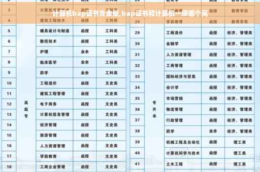 大家好,关于bap证书和计算机一级哪个高的问题,于是小编就整理了1个相关介绍bap证书和计算机一级哪个高的解答,让我们一起看看吧。