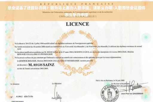 毕业证掉了可以补办。流程是先到学校开个证明,然后到教育局去补办,时间大约在一个月左右(主要是教育局那边慢)。入职手续如果毕业证掉了,人事部那边可以先根据毕业证的编号和本人身份证号码,在网上查询到你的毕业信息,打印出来后作为临时证明,会叫补办好了后再交过去,不过一般情况下,交不交都没关系了。