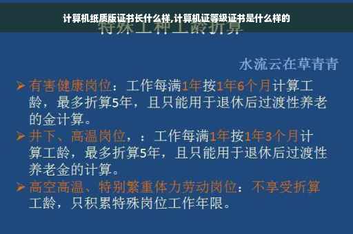 计算机二级的证书,就是一张约4平方分米的纸,黄色,花边。分“优秀”和“及格”两种。90分以上就是优秀,60分到90分就是及格。考试结束后约一个月时间,在网上既可以凭准考证号查到成绩了。至于纸质证书稍微迟点儿,凭准考证和身份证(单独身份证也可以)去当初报名考试的地方领取。终身有效。