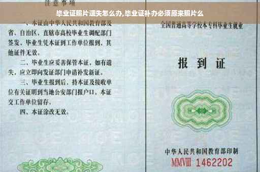 毕业证照片丢失,等同毕业证丢失,需要补办毕业证明书,可与毕业学校学籍管理部门联系,申请补办毕业证明书。