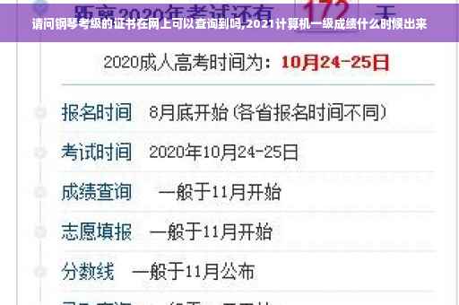 2021年9月计算机一级考试时间为9月25日至27日,考生可于考后35个工作日前后登录“中国教育考试网”进行成绩查询。考生对成绩如有疑问应在成绩发布后5个工作日内向考点提出书面复核申请,过期不再受理。