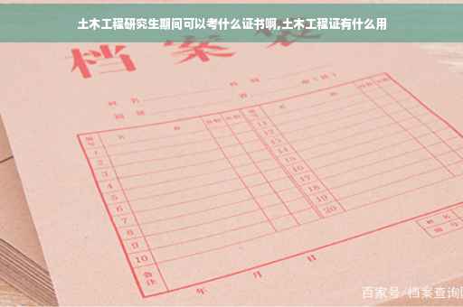 土木工程研究生期间可以考的证有:二级注册结构,一注结构基础,工程造价证书,工程管理证书等。 土木工程(英文:Civil Engineering)是建造各类工程设施的科学技术的统称。 它既指所应用的材料、设备和所进行的勘测、设计、施工、保养、维修等。