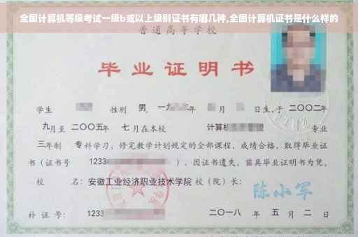 全国计算机等级考试一级b或以上级别证书有二级vb、二级c语言、二级C++、二级Java、二级WEB程序设计、二级VFP、三级PC技术、三级信息管理技术、三级数据库技术、三级网络技术等。 全国计算机等级考试(NationalComputerRankExamination,以下简称NCRE),是经原国家教育委员会(现教育部)批准,由教育部考试中心主办,面向社会,用于考查非计算机专业应试人员计算机应用知识与技能的全国性计算机水平考试体系。