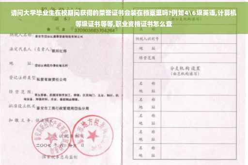 大学毕业生在校期间获得的荣誉证书会,例如4\6级英语,计算机等级证书等等.这些东东是国家认证的,当然会有记录的,当然不是把证书放在里面,放不下,但是里面有你的记录:如XX年,XX以XX分通过了国家英语四级等.但是另外的一种情况,如:你在学校的演讲比赛得奖,在作文大赛里面得奖,或者就是说班上或者社团里面获得奖,如果你上报了的话,会在你的每学期的记录上获奖情况那一栏有的,如果没有上报的话就没有了.学校现在应该都有素质拓展的认证吧,上面有详细的记录.北京反正基本的学校都有!放心吧,四六级,计算机啊是有的!!!:)