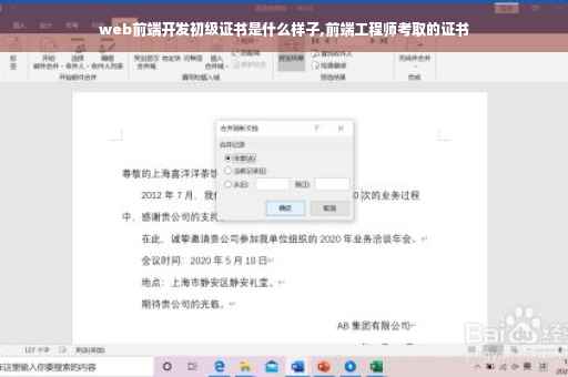 请注意,这些特征仅为一般情况下的参考,具体的Web前端开发初级证书的样式和内容可能因不同的机构和认证机构而有所不同。如果你对特定的证书感兴趣,建议咨询颁发该证书的机构或认证机构,以获取更详细和准确的信息。