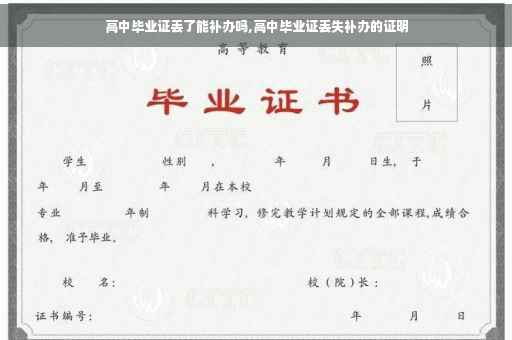 按照省教育厅规定,高中毕业证丢失、损坏一律不予补办,不能补发,只发学历证明。如需毕业信息等相关证明,可联系就读的高中学校给予开具。向毕业学校提出学历证明的申请,其与毕业证书有同等效用。
