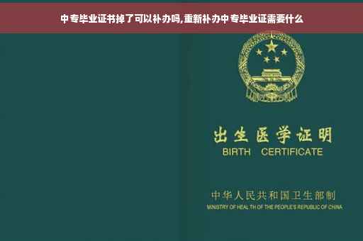 回答。中专毕业证书掉了不可以补办的。因为中专毕业证是唯一的。并且是特殊证件。如果中专毕业证书掉了没有办法补办。这是教育部的规定。不过有补救的方法。拿就是。你可以带上你的身份证。找到你的中专班主任。可以去学校的教务处开一个学籍证明。它和毕业证有同等效力。