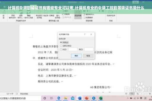 考试分为四个等级,不同等级的内容不同,一级主要考核微型计算机基础知识和使用办公软件及因特网(Internet)的基本技能。一级分为DOS版和Windows版,考核应试者计算机基本知识和使用微机系统的初步能力。考试科目有一级MS Office、一级WPS Office、一级Photoshop,一级共三个科目。一级WPS Office考试内容: (1) 选择题(计算机基础知识和网络的基本知识)。(2) Windows 操作系统的使用。(3) WPS 文字的操作。(4) WPS 表格的操作。(5) WPS 演示软件的操作。(6) 浏览器(IE)的简单使用和电子邮件收发。一级MS Office考试内容: (1) 选择题(计算机基础知识和网络的基本知识)。(2) Windows 操作系统的使用。(3) Word 操作。(4) Excel 操作。(5) PowerPoint 操作。(6) 浏览器(IE)的简单使用和电子邮件收发。一级Photoshop考试内容: (1)单项选择题 (含计算机基础知识部分,Photoshop 知识与操作部分)。(2)Photoshop 操作题(含3 道题目)。到此,以上就是小编对于计算机中级职称证书有哪些专业的问题就介绍到这了,希望介绍关于计算机中级职称证书有哪些专业的5点解答对大家有用。