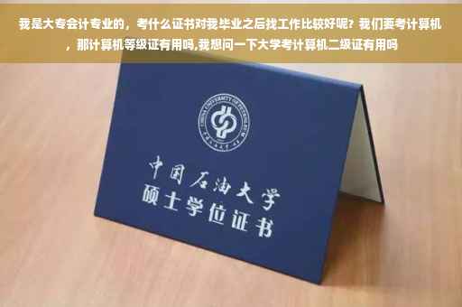 如果你想从事会计工作那么“会计从业资格证”你必须考,最好能够考到初级会计师; 至于计算机考试:一级考了等于没考,基本没用。一级有了证书相当于你的大学生计算机基础这门课通过了,会一些基本的操作技能,办公软件操作知识,电脑知识而已。而且全是理论上的。二级都没啥用。