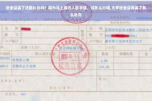 毕业证掉了可以补办。流程是先到学校开个证明,然后到教育局去补办,时间大约在一个月左右(主要是教育局那边慢)。入职手续如果毕业证掉了,人事部那边可以先根据毕业证的编号和本人身份证号码,在网上查询到你的毕业信息,打印出来后作为临时证明,会叫补办好了后再交过去,不过一般情况下,交不交都没关系了。