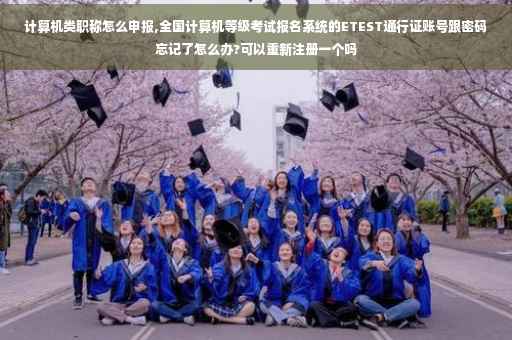 您好,可以重新注册的。全国计算机等级考试报名系统的ETEST通行证账号跟密码忘记了可以通过以下方式找回:点个人中心登录”页面的“密码找回”链接,找回密码。根据身份证号找回。到学校教务处去说明情况,找回密码。