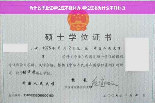 因为毕业证和学位证,上面都会有一个独一无二的编号,一个编号对应一个证书,如果我们补办了一个一模一样的证件,那么就会出现一个编号对应多个证书的情况,这样不利于毕业证的管理,另外,我们也无法做到毕业证和学位证做1比1的还原,因为学校可能会随着发展而更换名字,或者校长也会退休,那么,在校长签字,这些地方就无法做到还原,所以国家就不允许我们补办原件,只能办理毕业证明书,这个毕业证明书可以代替毕业证证明我们的学历,学位证也是如此,也就是说,如果把毕业证和学位证这两个证件弄丢了,只要及时了办理了毕业证明书和学位证明书,就不会造成什么影响。