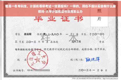 这个考试你不去考那是不行的。对于专科来说,一级计算机考试是获得专科毕业文凭所必需经历的一个环节。作为专科教育阶段的一个重要学习环节,可以预期你如果不去参加考试的话,那么是无法获得这门课程的学分,到时候就无法顺利毕业了。