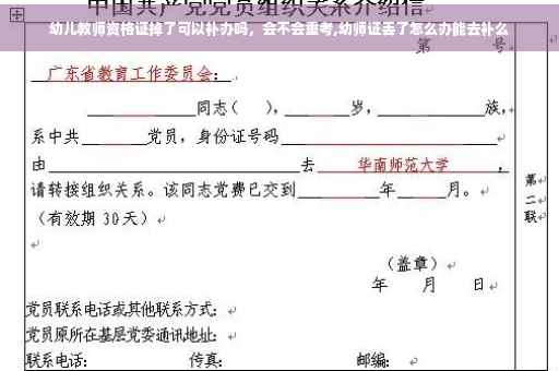 如果幼师资格证丢失,可以到当地的人力资源和社会保障局或教育局办理补办手续。需要准备的材料包括: