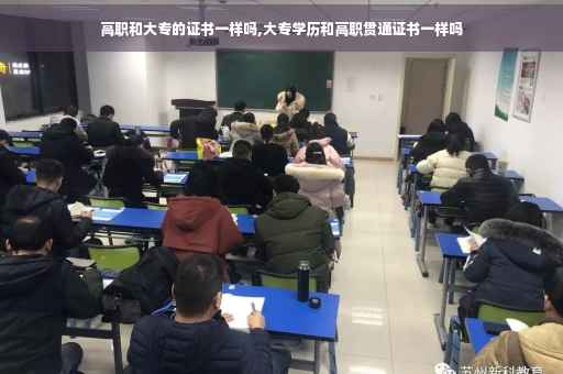 是一样的,相对于普通高等教育而言,高职偏重于培养技术应用型人才,高职的学历主要是专科层次,高职学生毕业时颁发国家承认学历的大专毕业证书,并享受普通大专生的一切待遇,由于国家大力发展高职教育,目前我国内地专科层次高等教育基本只有高职。