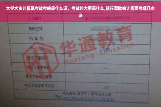 考试分为四个等级,不同等级的内容不同,一级主要考核微型计算机基础知识和使用办公软件及因特网(Internet)的基本技能。一级分为DOS版和Windows版,考核应试者计算机基本知识和使用微机系统的初步能力。考试科目有一级MS Office、一级WPS Office、一级Photoshop,一级共三个科目。一级WPS Office考试内容: (1) 选择题(计算机基础知识和网络的基本知识)。(2) Windows 操作系统的使用。(3) WPS 文字的操作。(4) WPS 表格的操作。(5) WPS 演示软件的操作。(6) 浏览器(IE)的简单使用和电子邮件收发。一级MS Office考试内容: (1) 选择题(计算机基础知识和网络的基本知识)。(2) Windows 操作系统的使用。(3) Word 操作。(4) Excel 操作。(5) PowerPoint 操作。(6) 浏览器(IE)的简单使用和电子邮件收发。一级Photoshop考试内容: (1)单项选择题 (含计算机基础知识部分,Photoshop 知识与操作部分)。(2)Photoshop 操作题(含3 道题目)。会计进银行工作需要银行从业资格证,其他的都是辅助的。主要看银行的要求,各个银行都是不一样的。一般来说,除毕业证、学位证外,银行业从业资格证书、理财师证书、计算机等级、英语,计算证书等。 银行工作人员招聘条件: