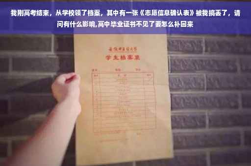 问题不大,这个你找你们班主任联系学校,可以重新给你补办一份的。不过千万要记住,自己档案里的东西不能弄丢了,这对自己未来发展很受影响的,像《志愿信息确认表》可以找学校补办,但是毕业证和其他档案,是不能补办的,所以千万保存好自己的档案,然后就是赶紧联系老师帮忙补办吧。