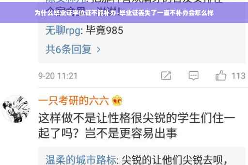 原因:毕业证书是证明个人学历和资质的重要文件,如果丢失会给证明个人学历和资质带来麻烦,需及时补办。