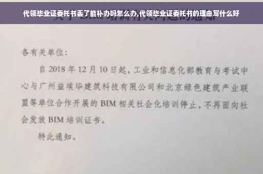 大家好,关于代领毕业证委托书丢了能补办吗的问题,于是小编就整理了4个相关介绍代领毕业证委托书丢了能补办吗的解答,让我们一起看看吧。