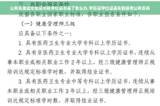 3、如果毕业证学位证丢失,需要及时找到相关部门申请补办,确保自己符合公务员招聘条件,顺利进入公务员行列。
